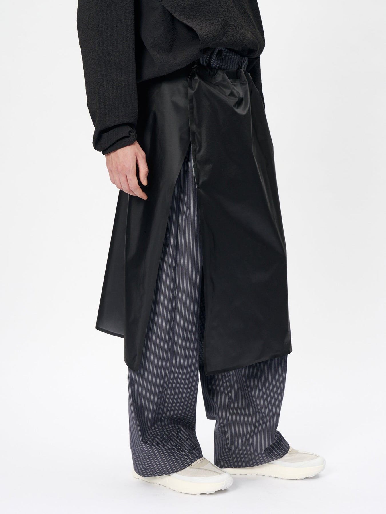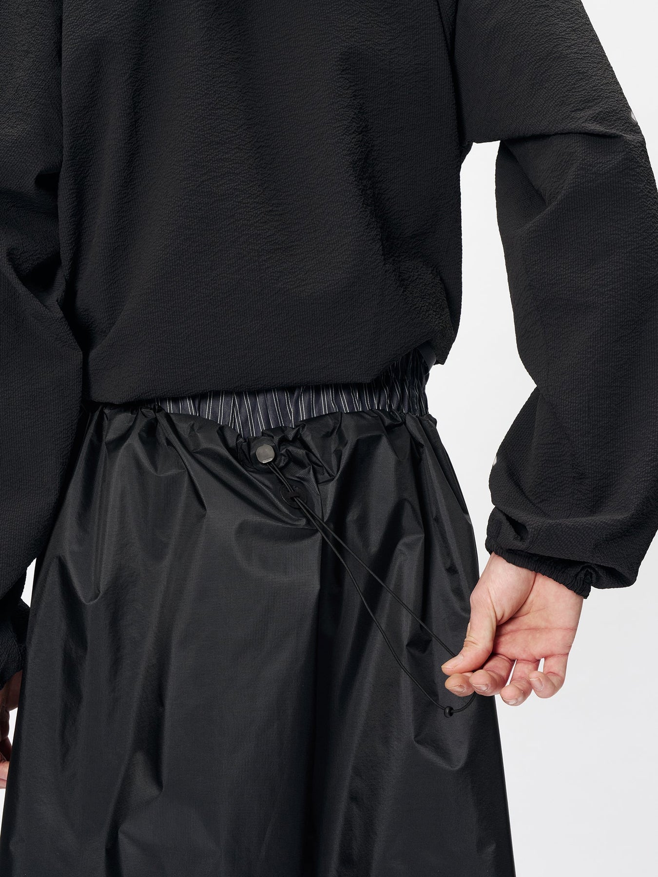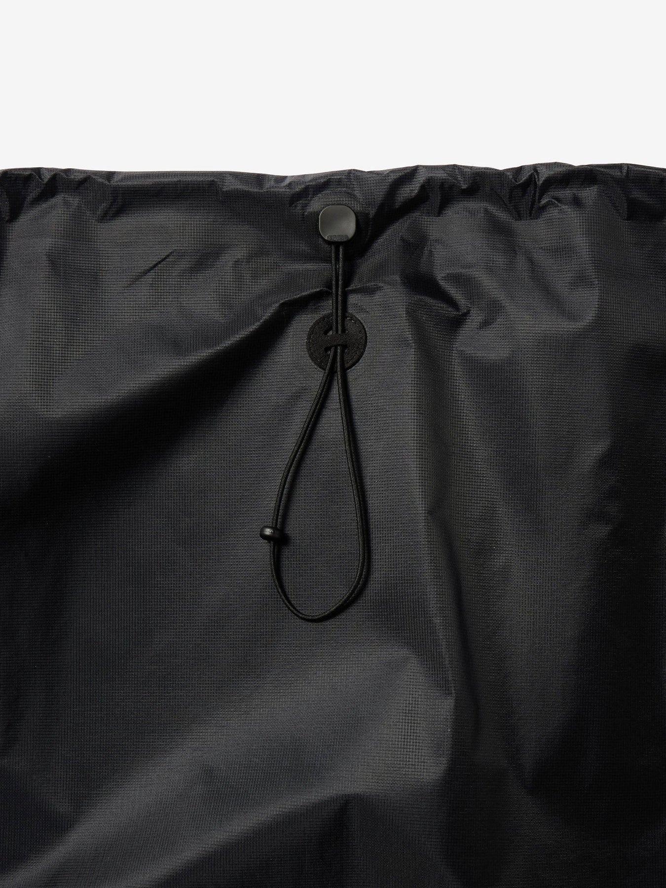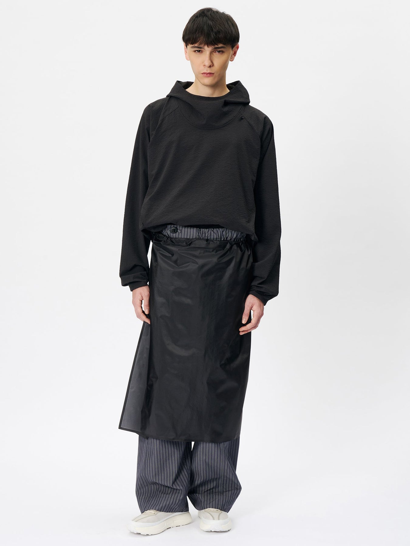 This waterproof rain wrap is made with 3-layer fabric and fully seam-sealed construction. It features an exceptionally lightweight, translucent nylon material that offers both waterproofness and breathability. Easier to put on than traditional rain pants, it protects the lower body from rain while remaining convenient to wear. The waist is adjustable with a drawcord, and the wrap is packable into its side pocket for compact storage.