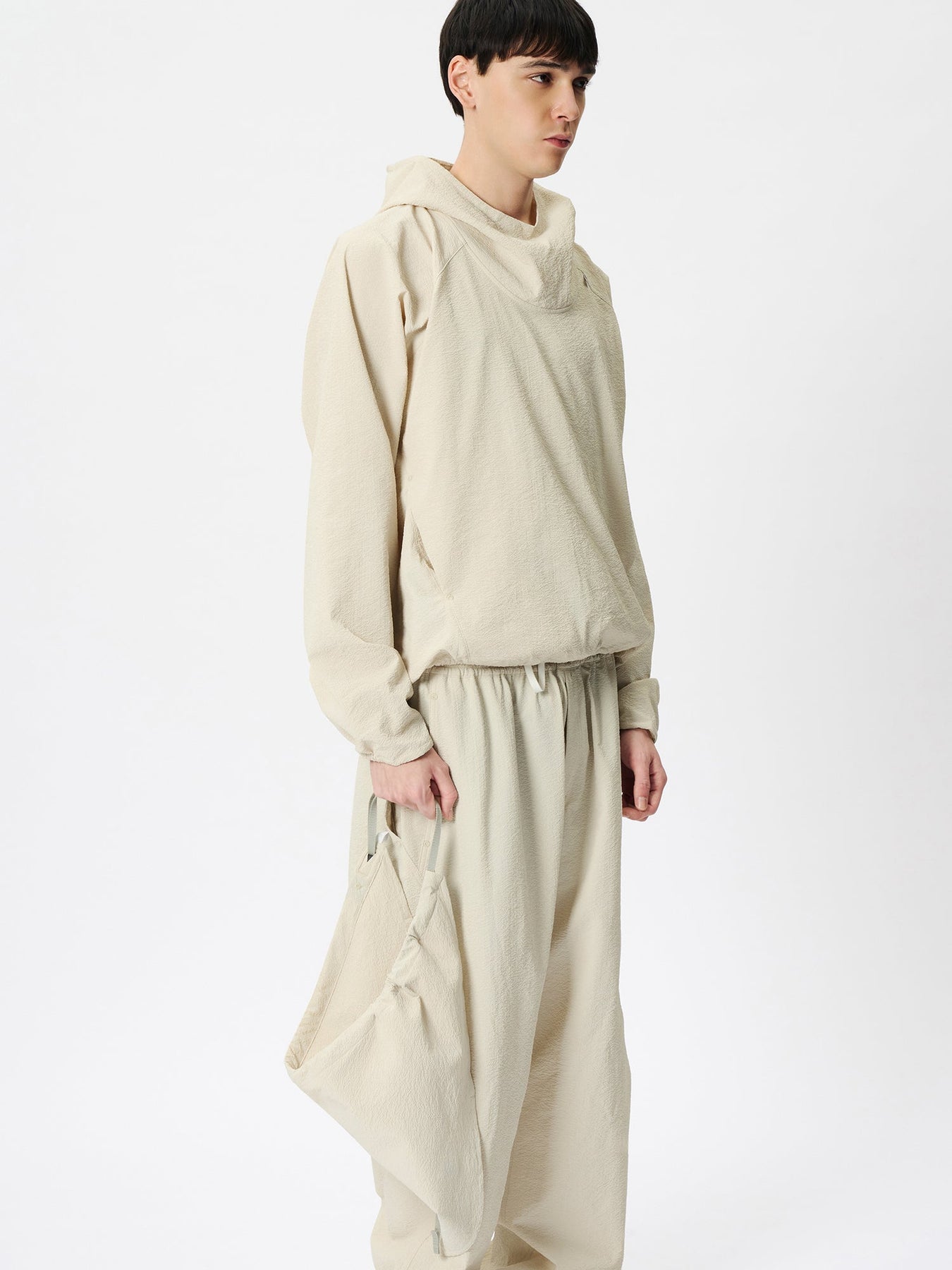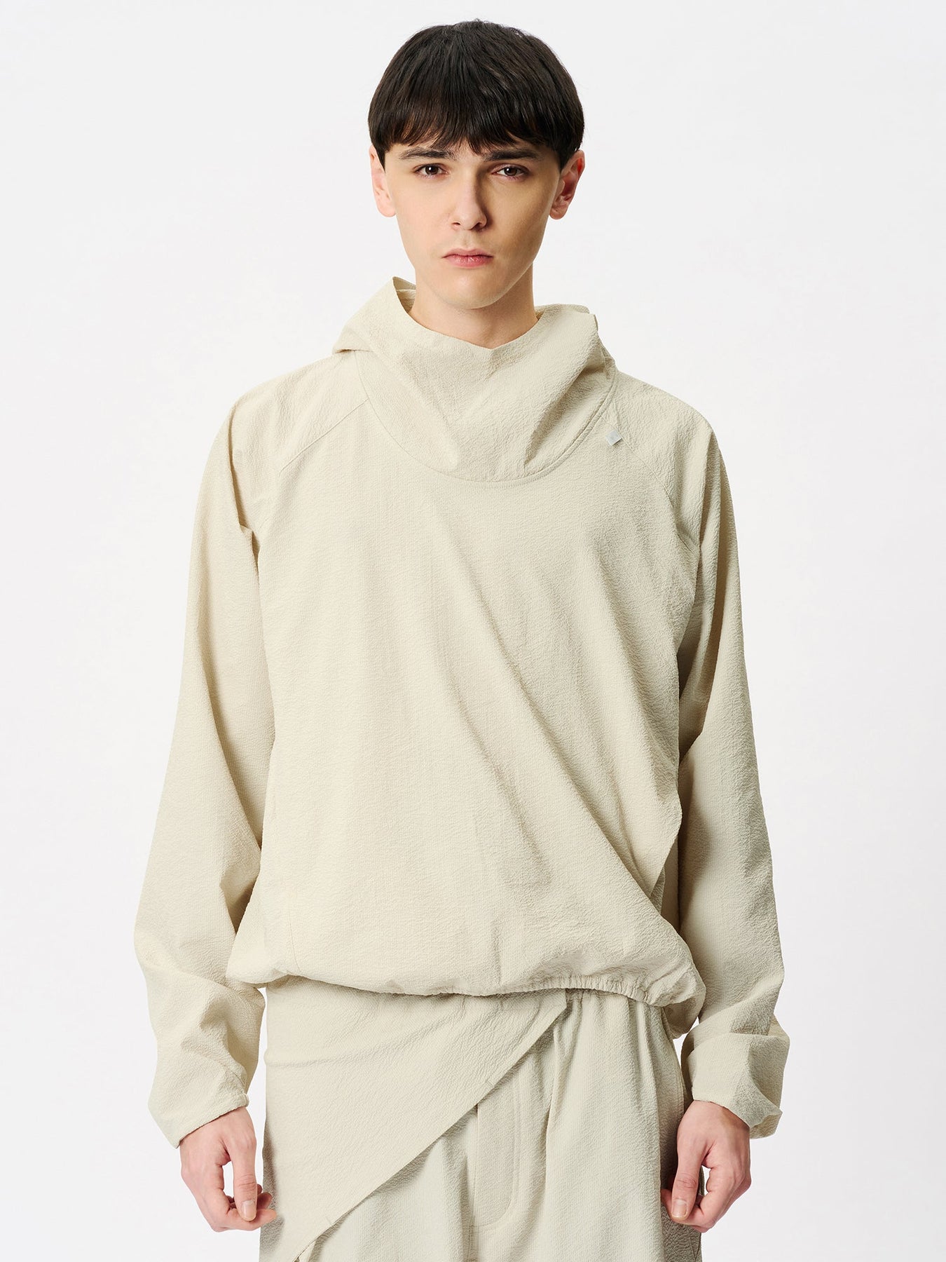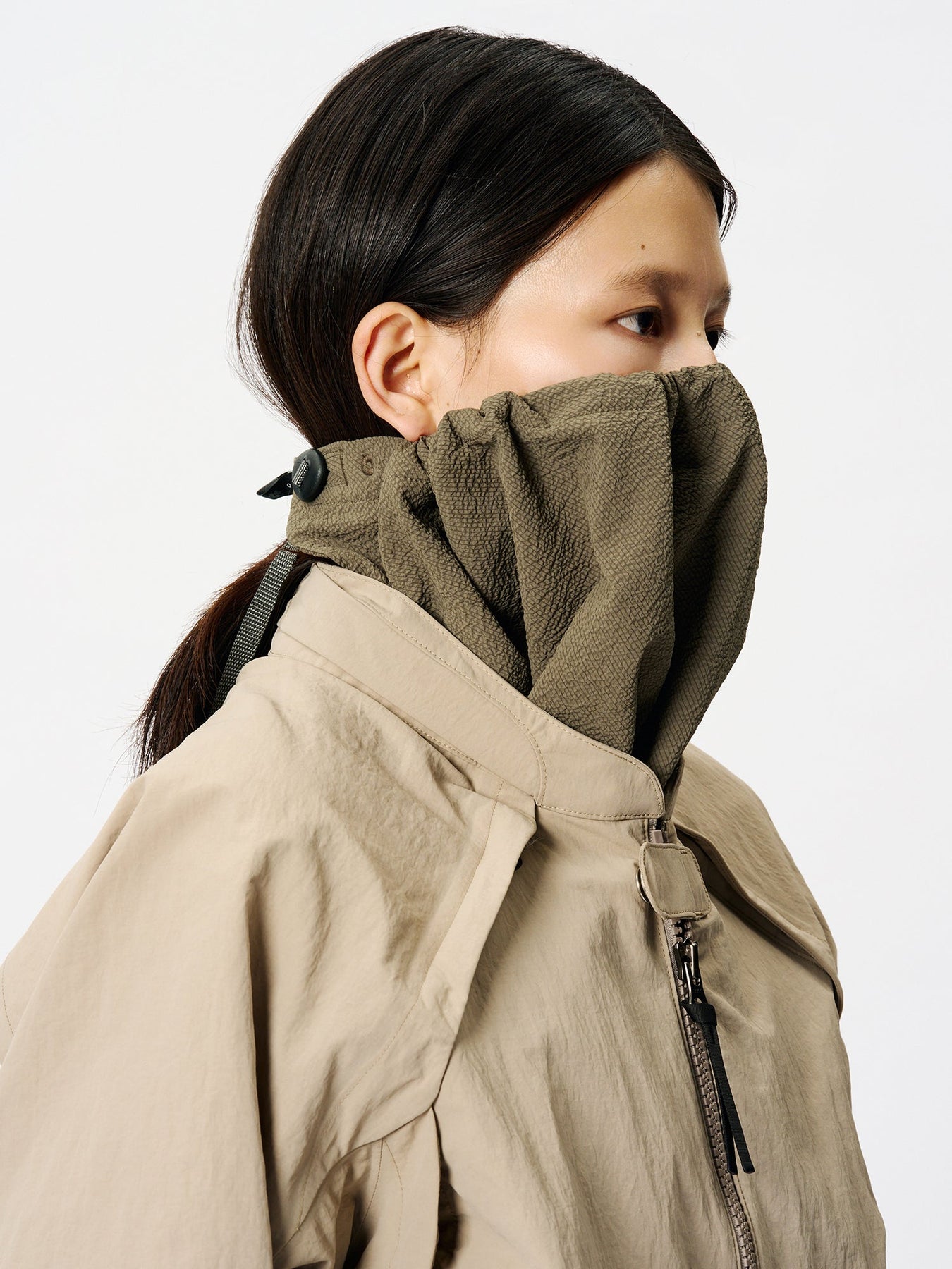 This versatile bandana doubles as a pouch and is made from a fabric with a finely rippled, wave-like texture. It offers moisture-wicking and quick-drying performance and is designed with built-in UV protection, tested according to AS/NZS 4399, making it suitable for use as a bandana in strong sunlight. The interior of the item serves as a storage space, allowing it to function as a compact pouch as well.