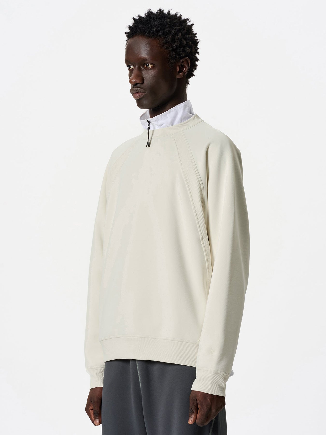 A technical crew-neck sweatshirt that balances a clean, minimalist appearance with superior comfort.