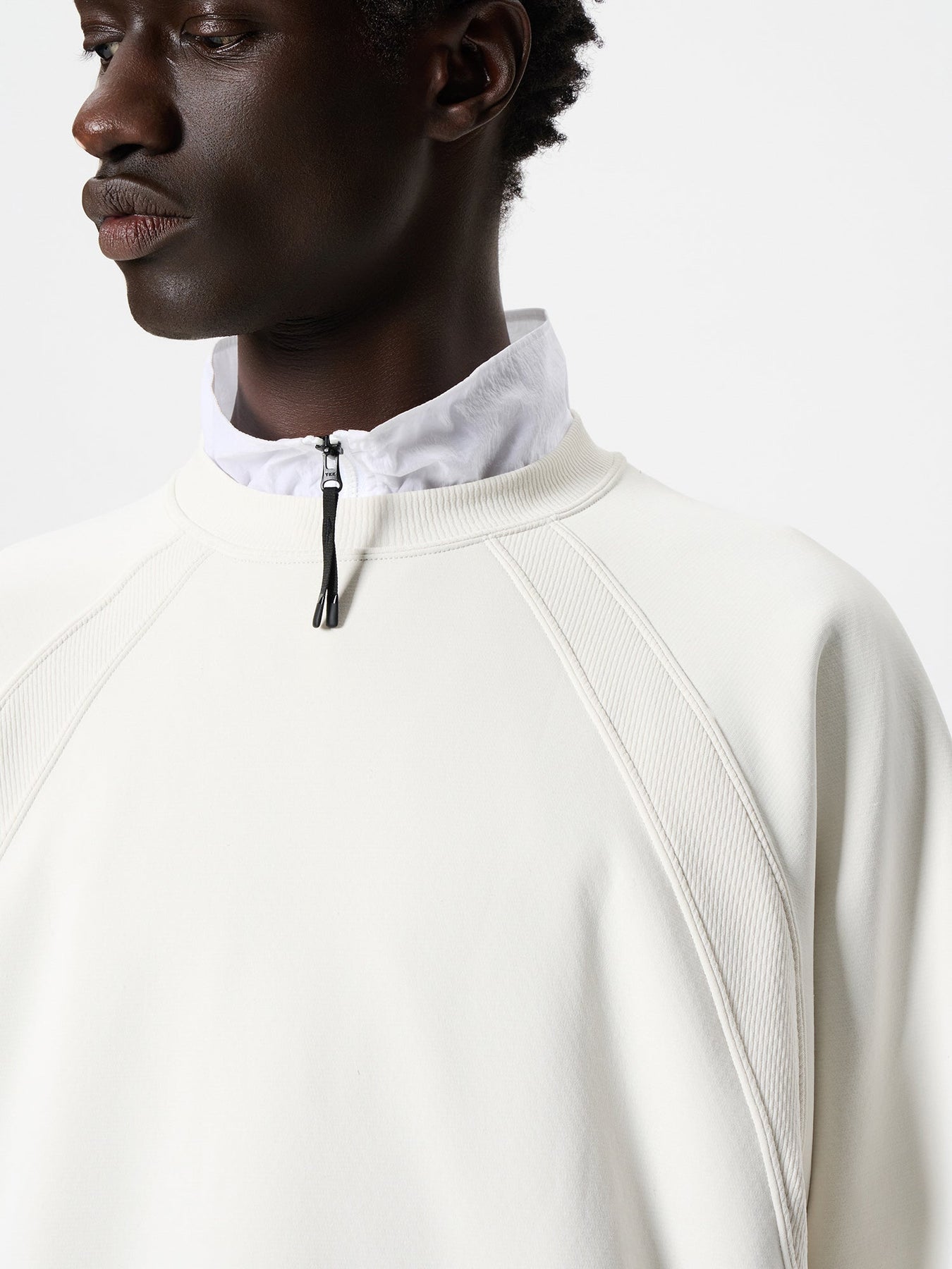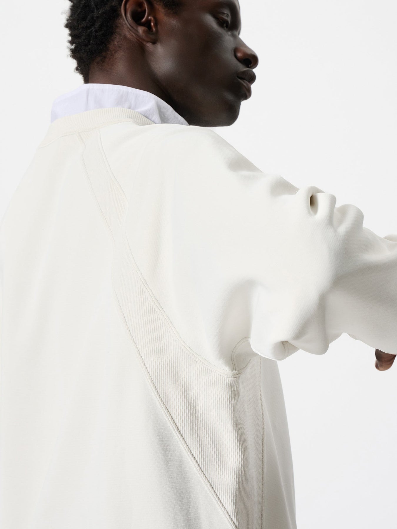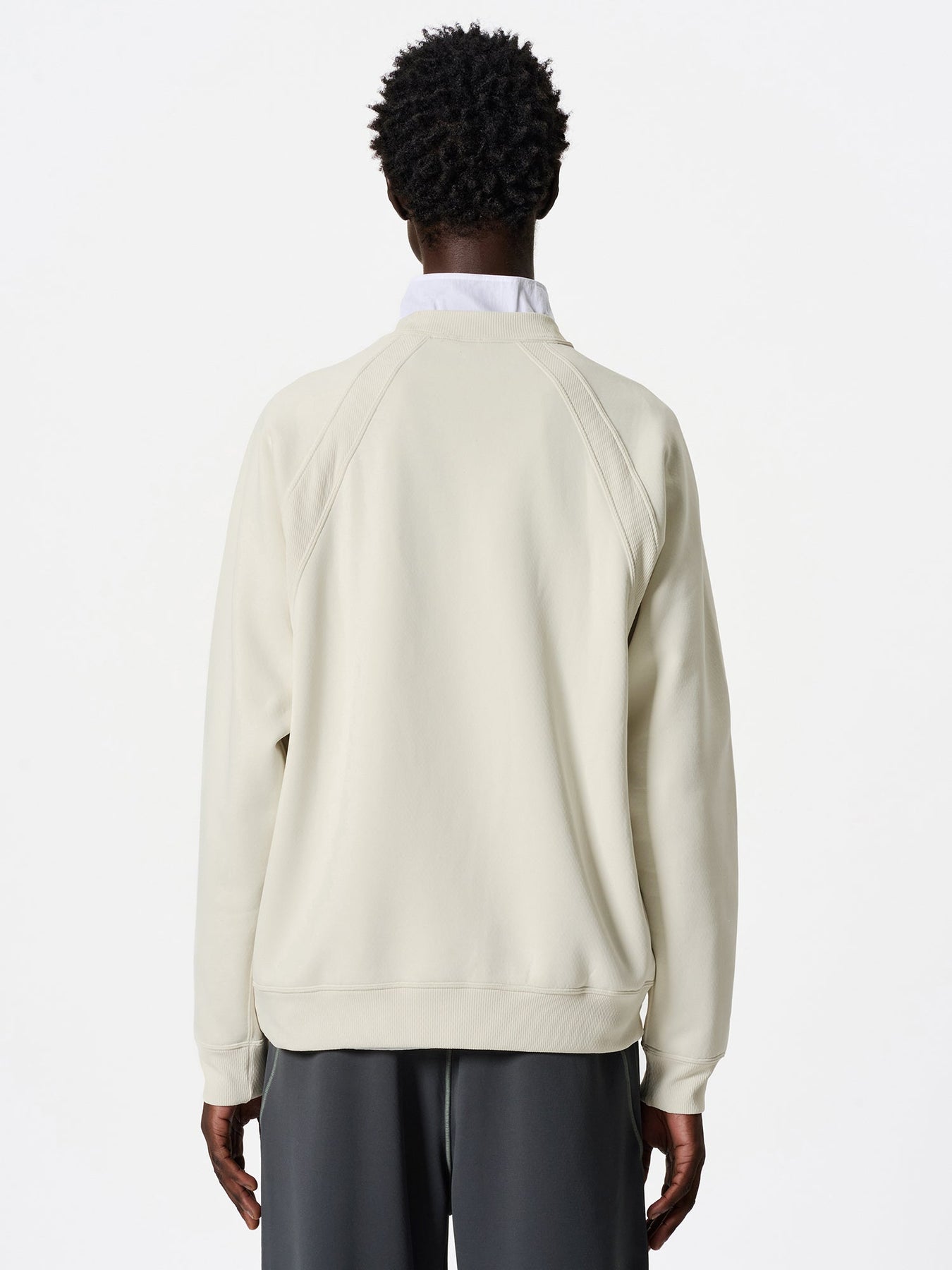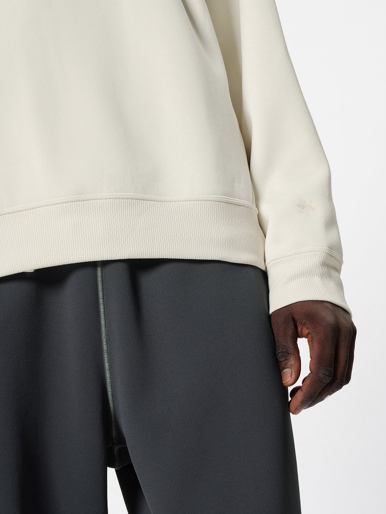 • Double-needle stitching with understated contrasting tones highlights refined sweatshirt detailing without overwhelming the minimalist aesthetic.