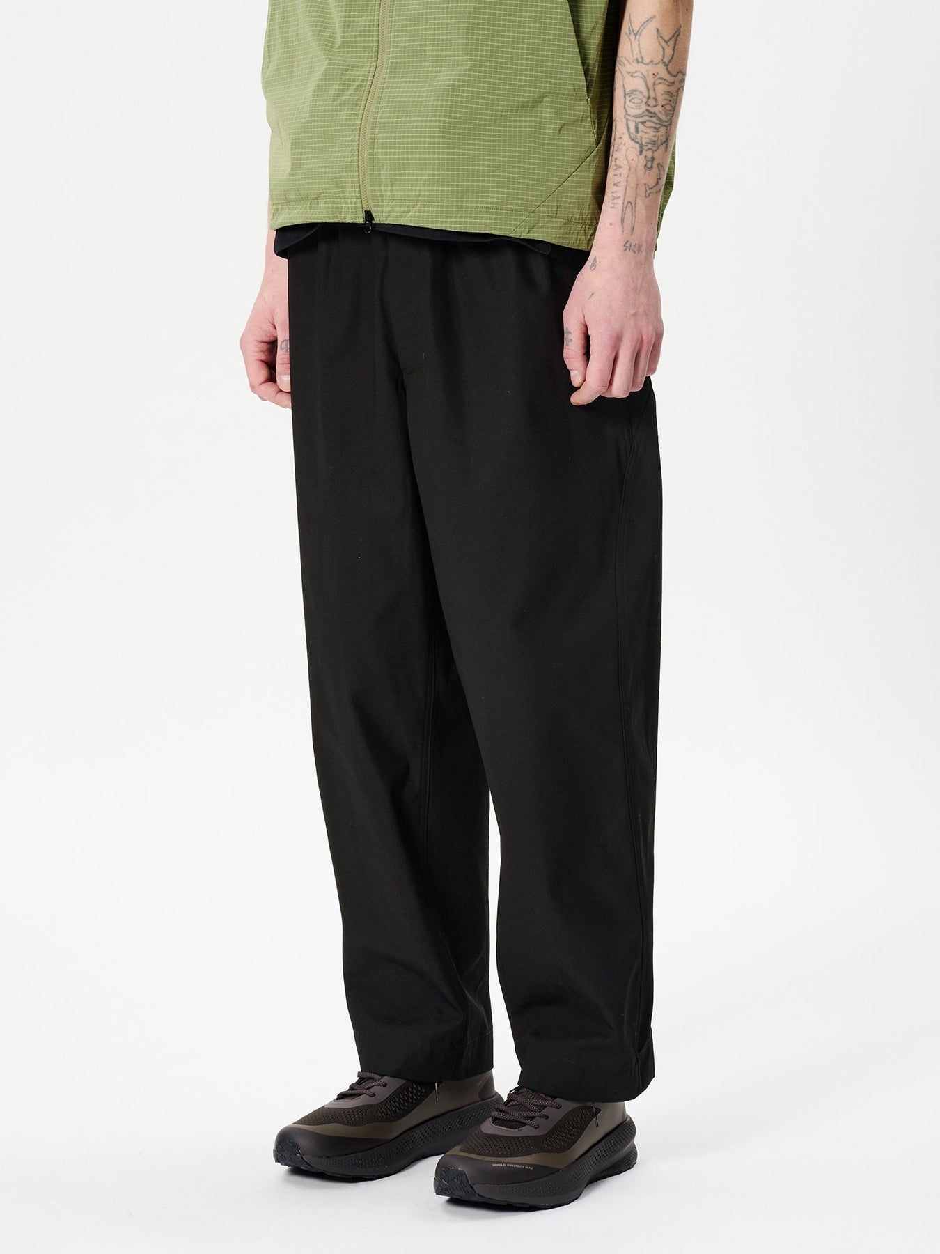 Pants made from strong-twist yarns for a crisp, dry-touch texture that delivers a sharp, structured look while softening over time.