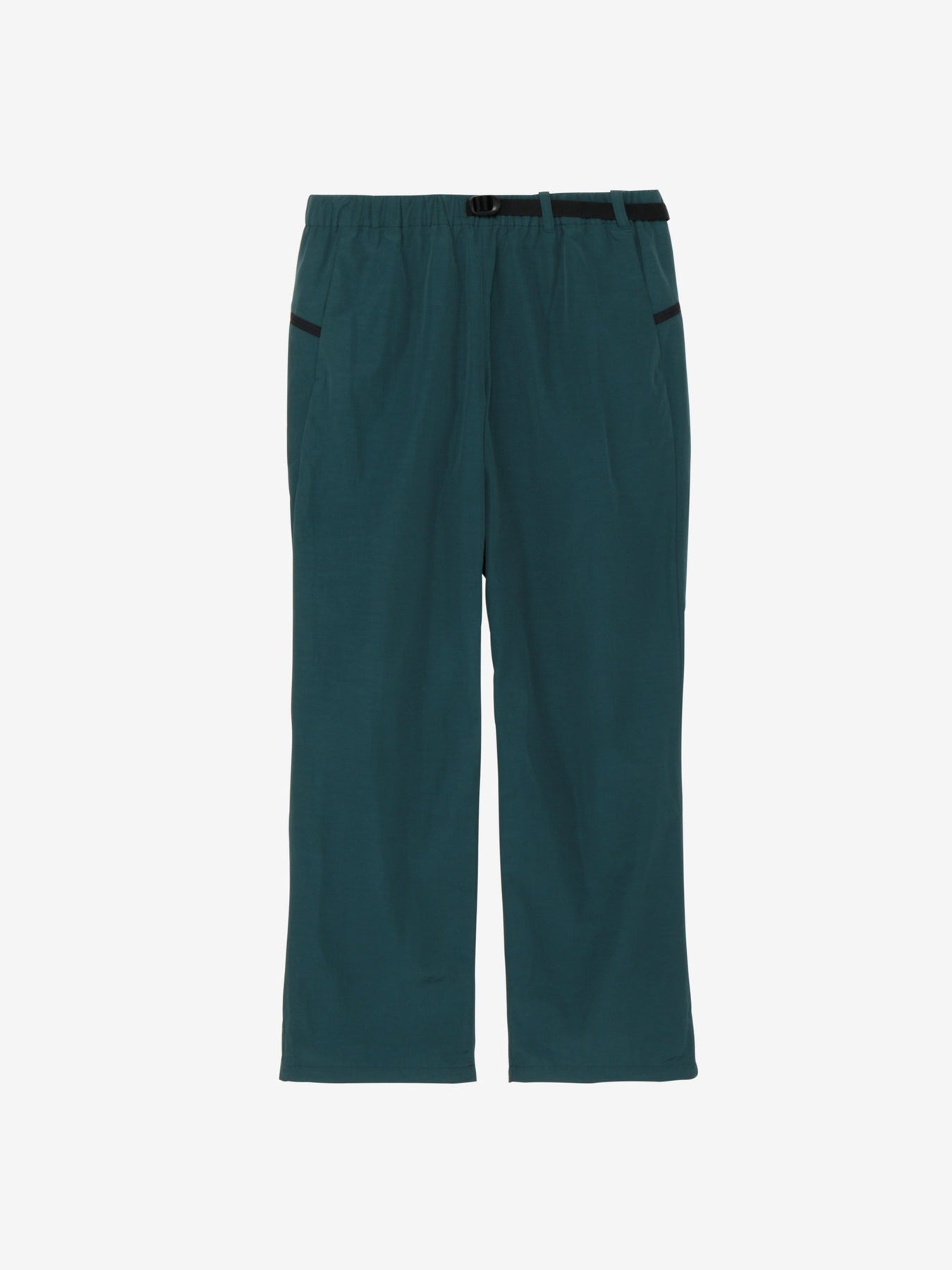 Pants crafted from high-density recycled nylon fabric, featuring a distinctive crisp yet supple texture suitable for extended seasonal wear.
