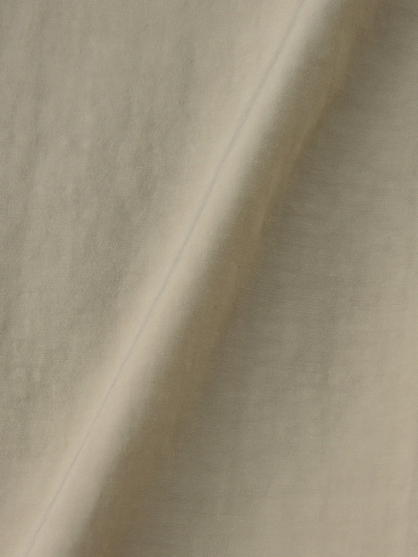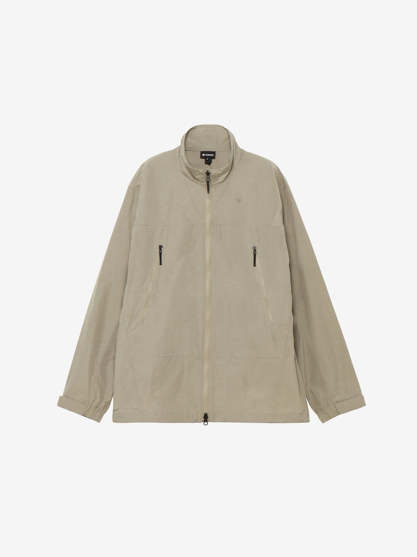 A jacket made of a fabric densely woven with recycled nylon thread that has a unique texture and feel. One-piece design with just the right thickness useful over many seasons.