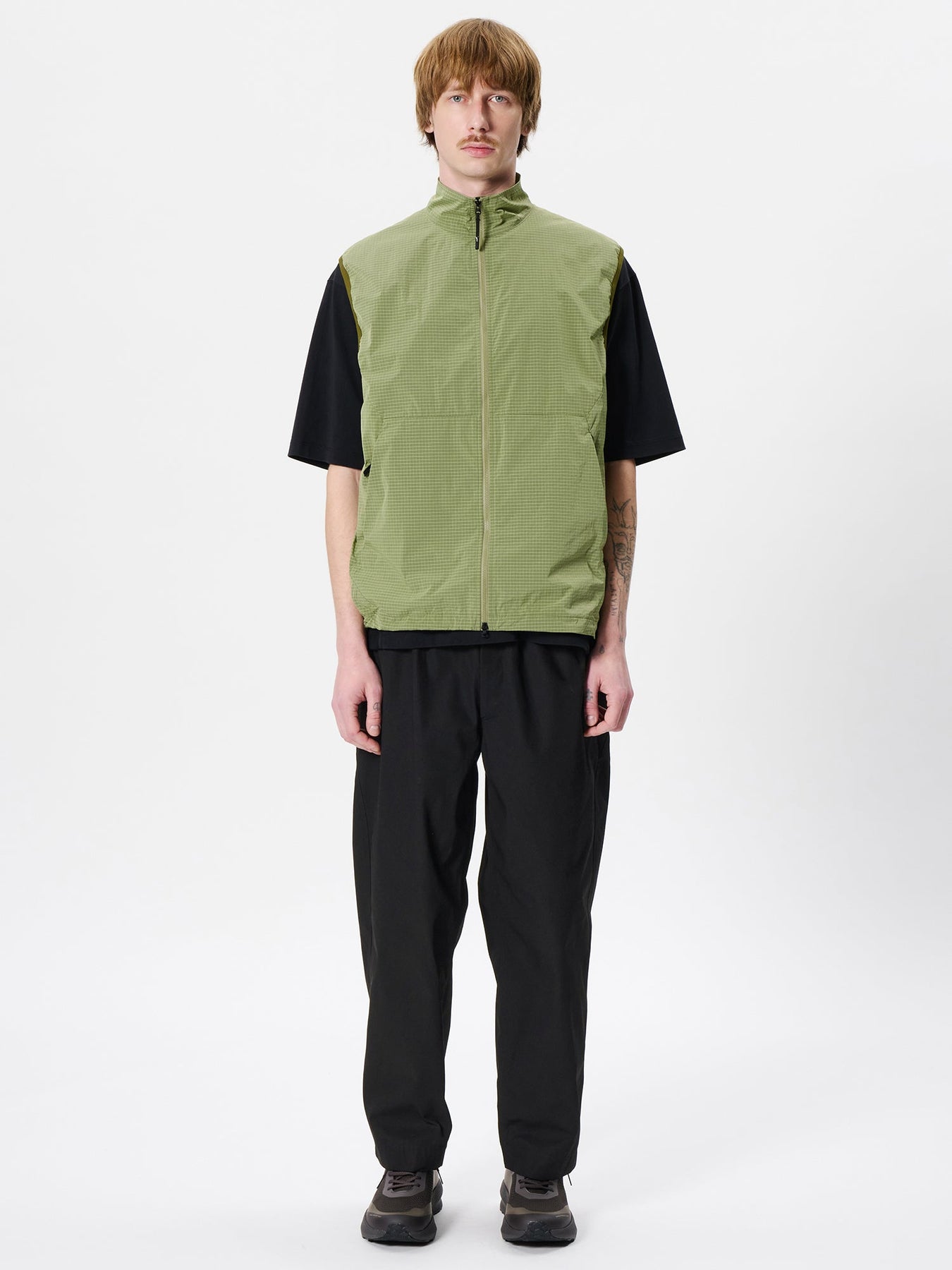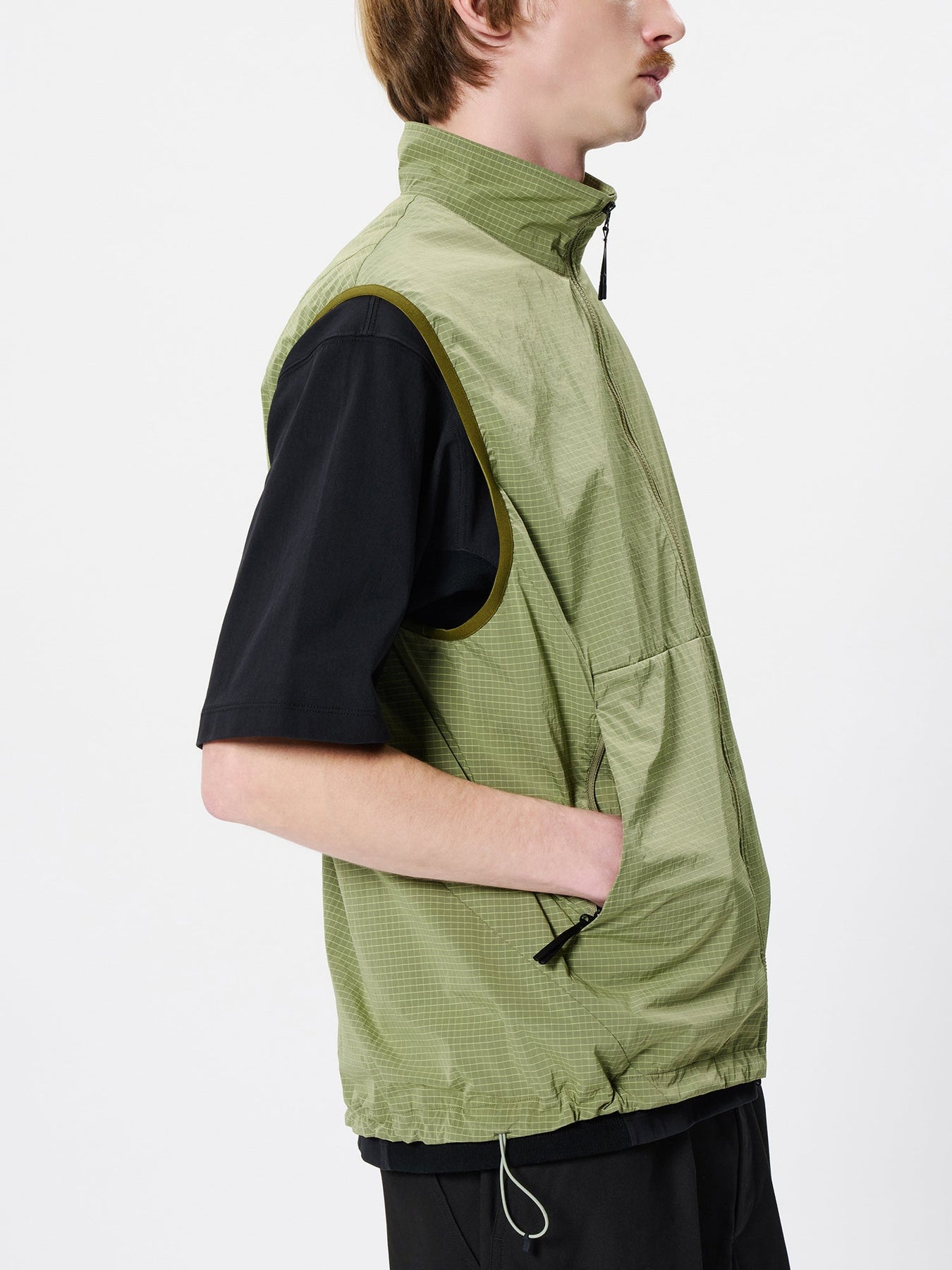 A wind vest made with Goldwin’s original fabric, featuring a refined and understated texture. Designed with mesh lining for comfortable wear across multiple seasons.