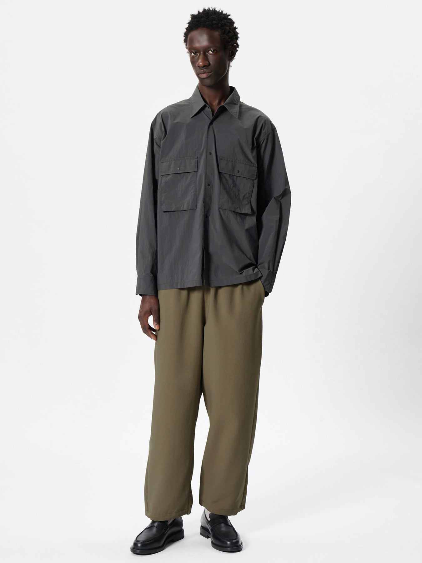 A lightweight outer shirt designed for easy packing and travel, offering functional protection with a natural, refined texture.
