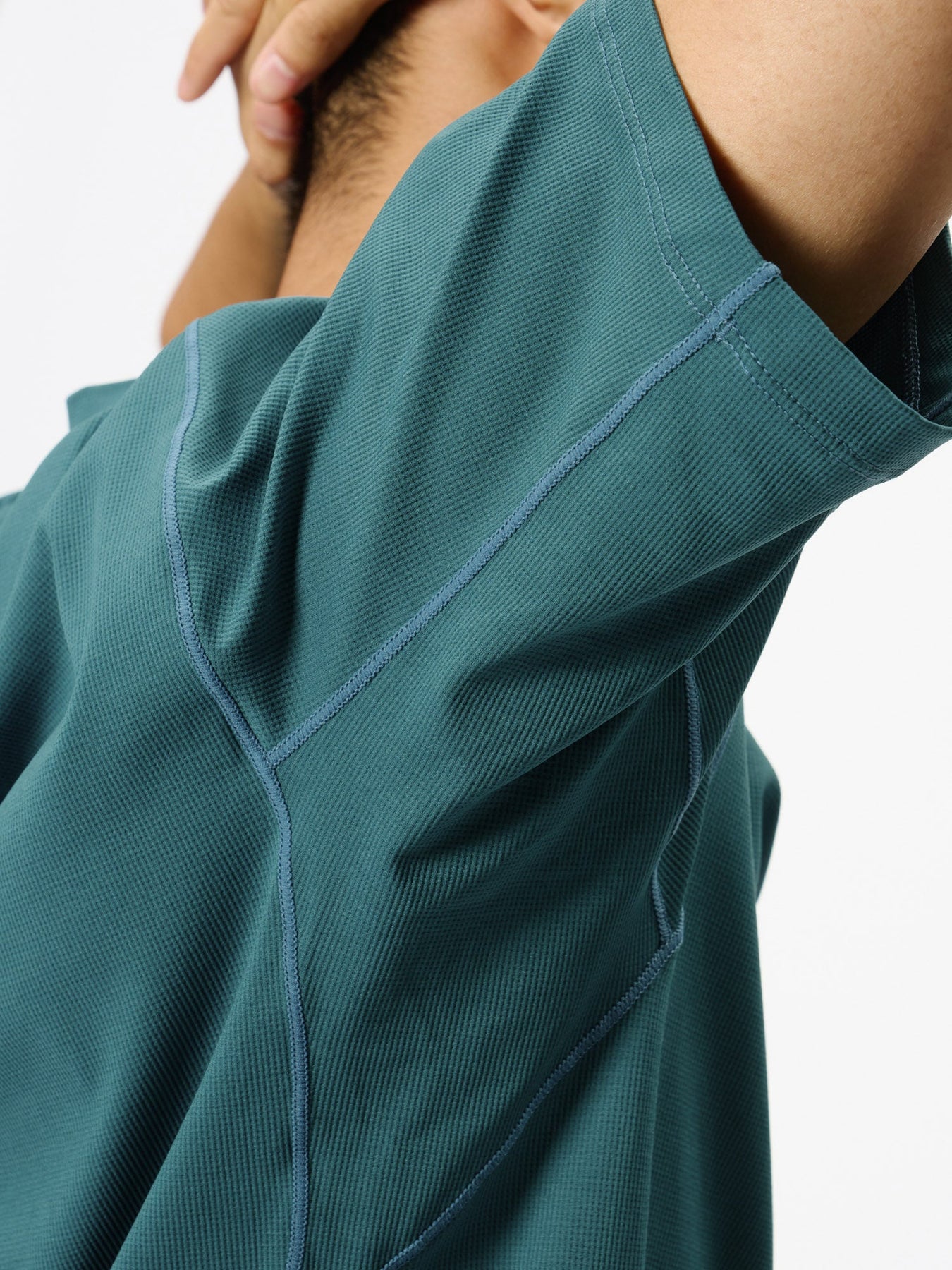 A T-shirt great for active situations such as running and trekking where sweat is involved. The textured waffle fabric has a dry touch with sweat-absorption/quick-drying properties. Design is simple to be practical in a variety of situations.