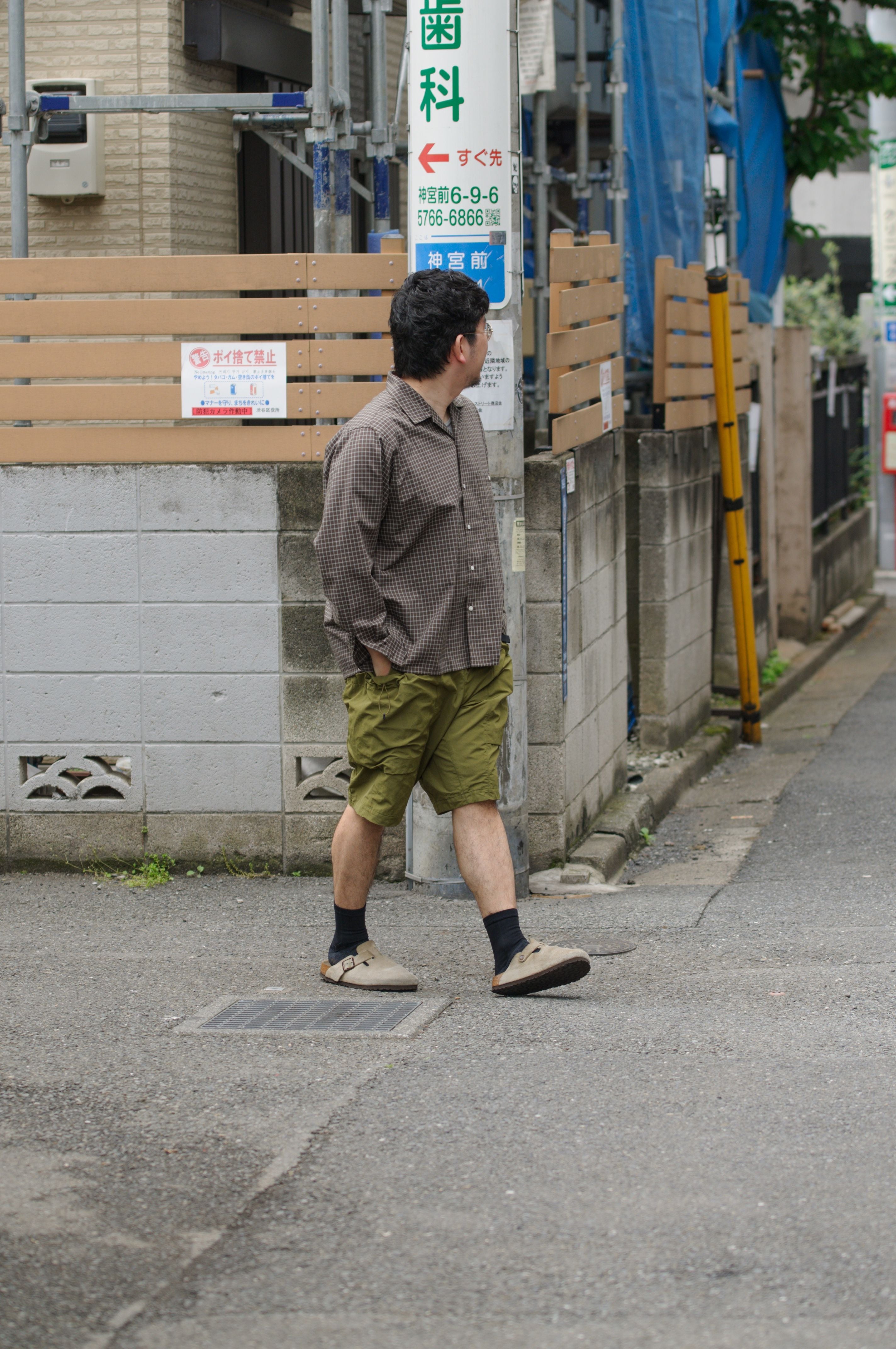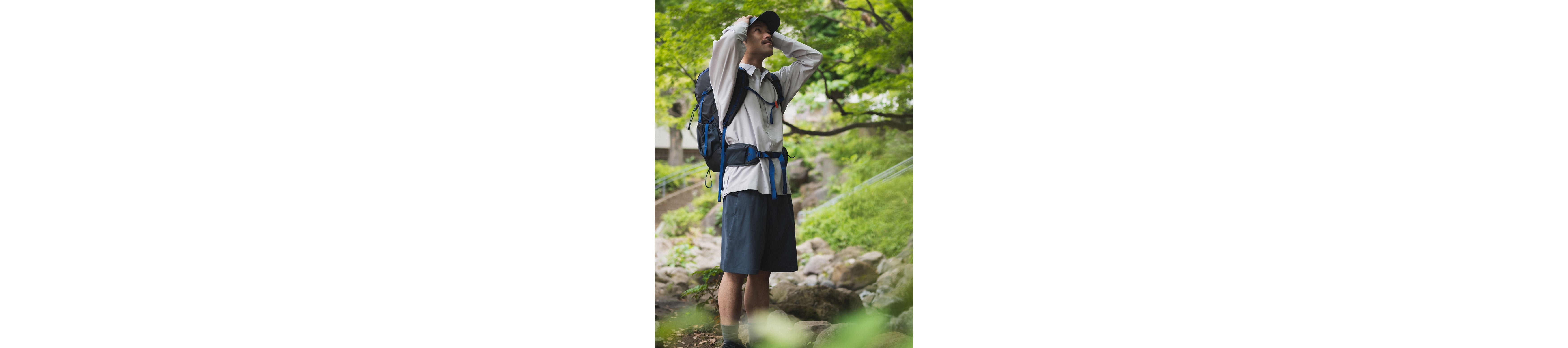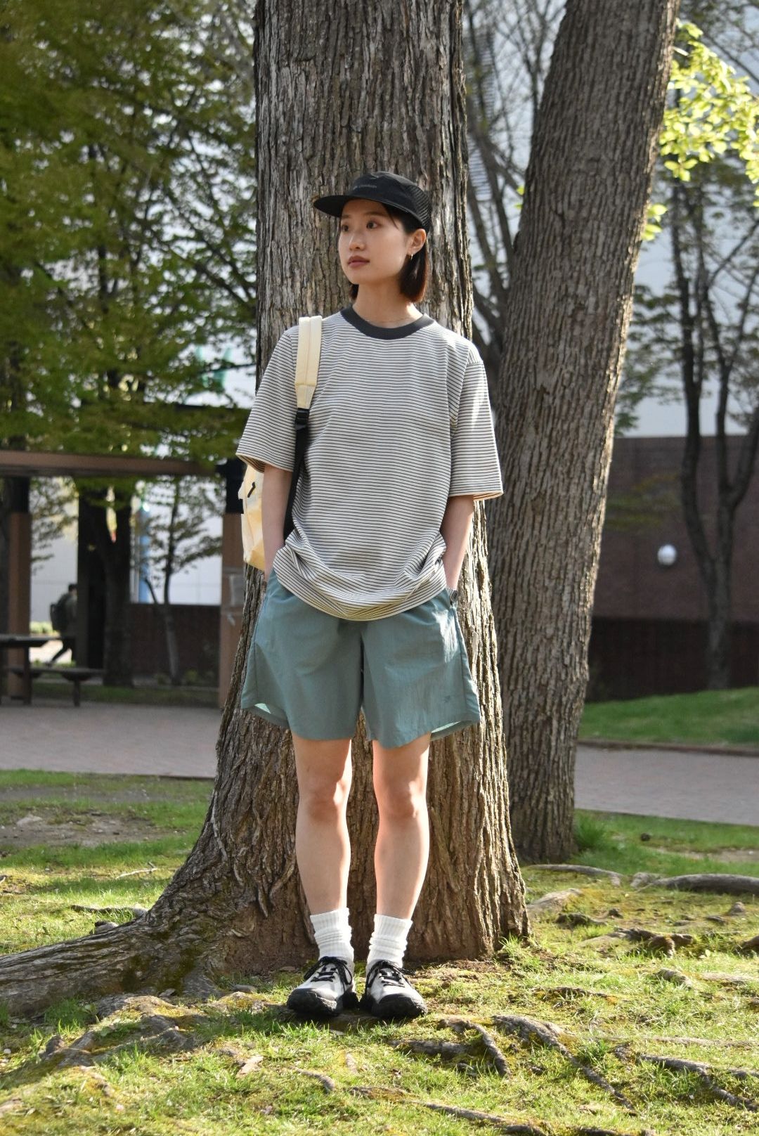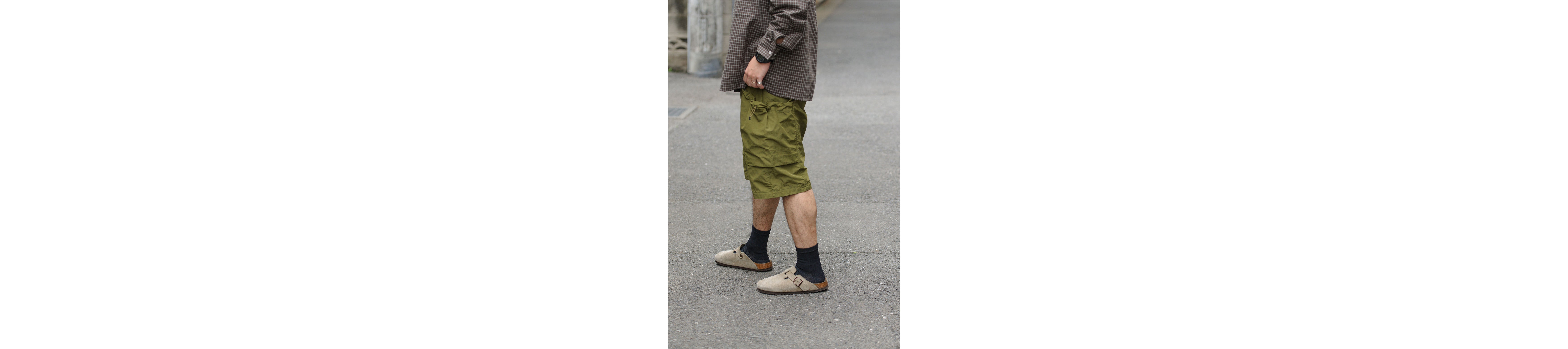 With their sporty texture, these shorts lend themselves to a sharp, active look. To avoid a too-youthful impression that sometimes comes with a simple tee-and-shorts combo, we added a structured vest and stuck to monochrome tones—creating a more refined, grown-up finish.