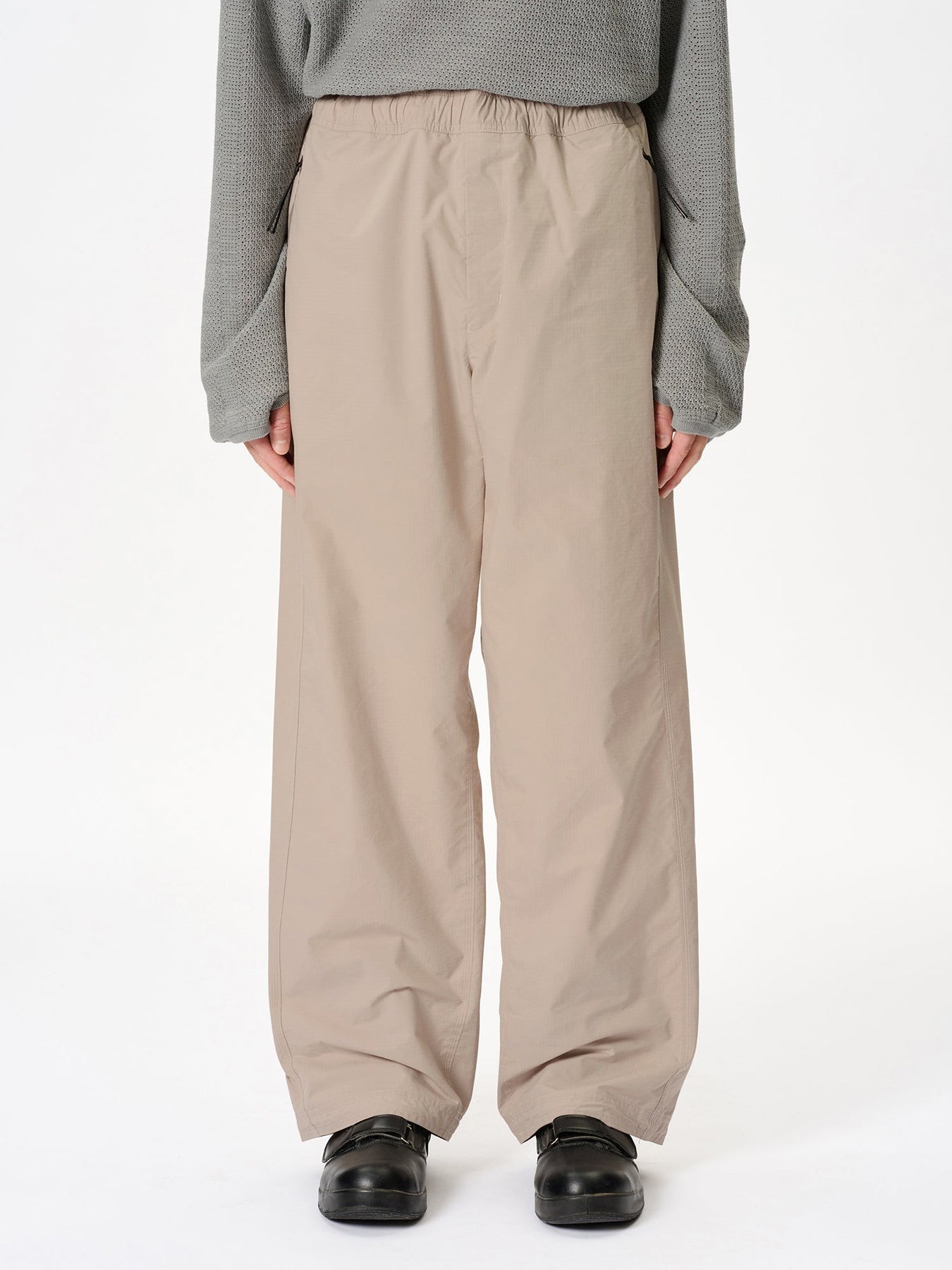 Die FW25-Kollektion von Goldwin 0 steht für Langlebigkeit und Designinnovation. Locker geschnittene Easy-Pants aus einem robusten Baumwoll-Polyester-Hochdichte-Ripstop-Gewebe mit Beschichtungsfinish. Das feste Material verleiht der markanten Silhouette Form.