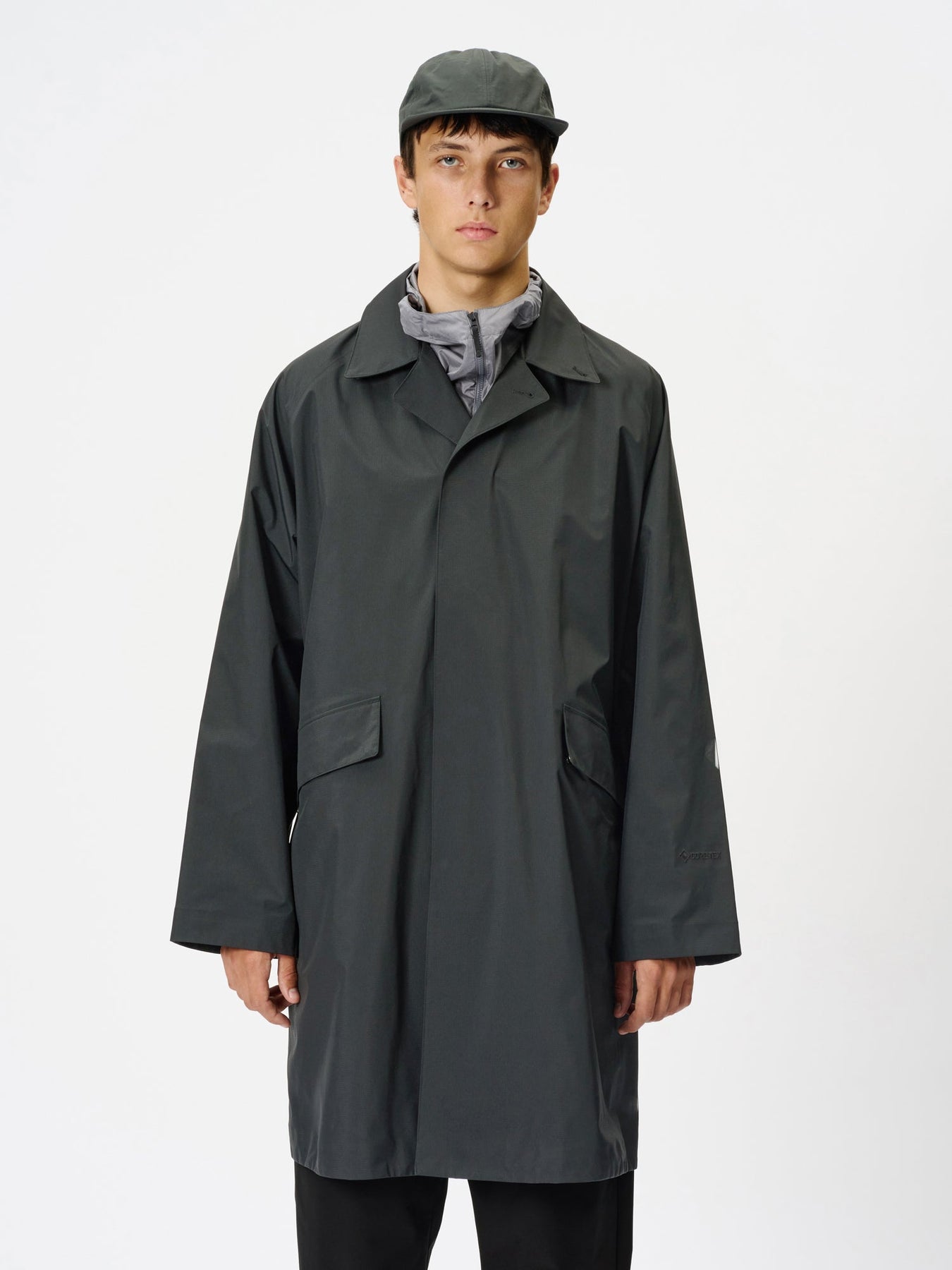 Ein wasserdichter Mantel aus GORE-TEX-Produkten mit hervorragenden wasser- und feuchtigkeitsdurchlässigen Eigenschaften. Er hat eine lockere Passform und eine etwas kürzere Länge, um eine ausgewogene Silhouette zu schaffen, die leicht wirkt und perfekt für einen lässigen Stil ist.