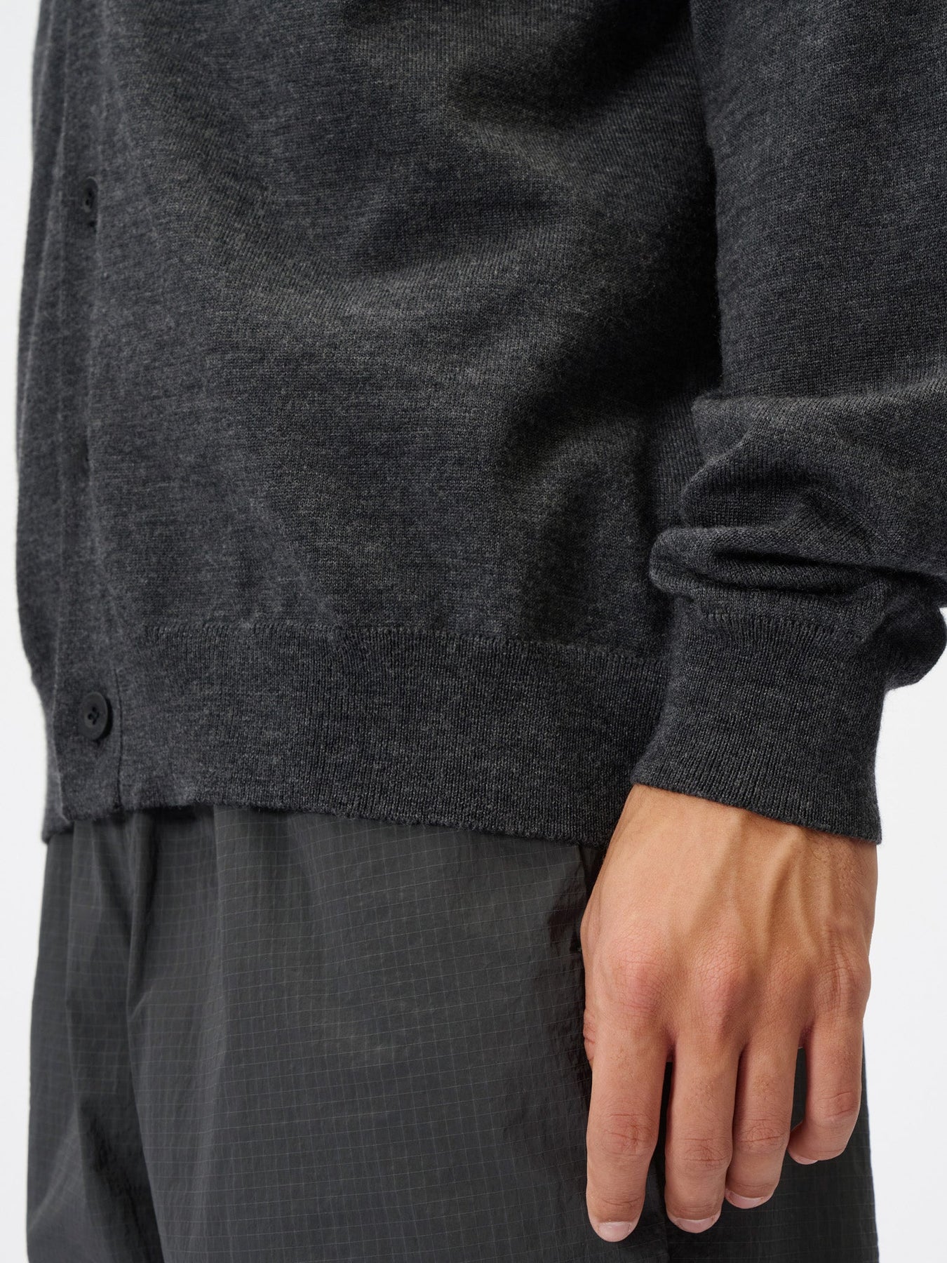 Ein einfacher Cardigan aus der Re-Optimum-Serie, entwickelt für die Regeneration mit KODENSHI-Technologie und natürlicher Wolle.