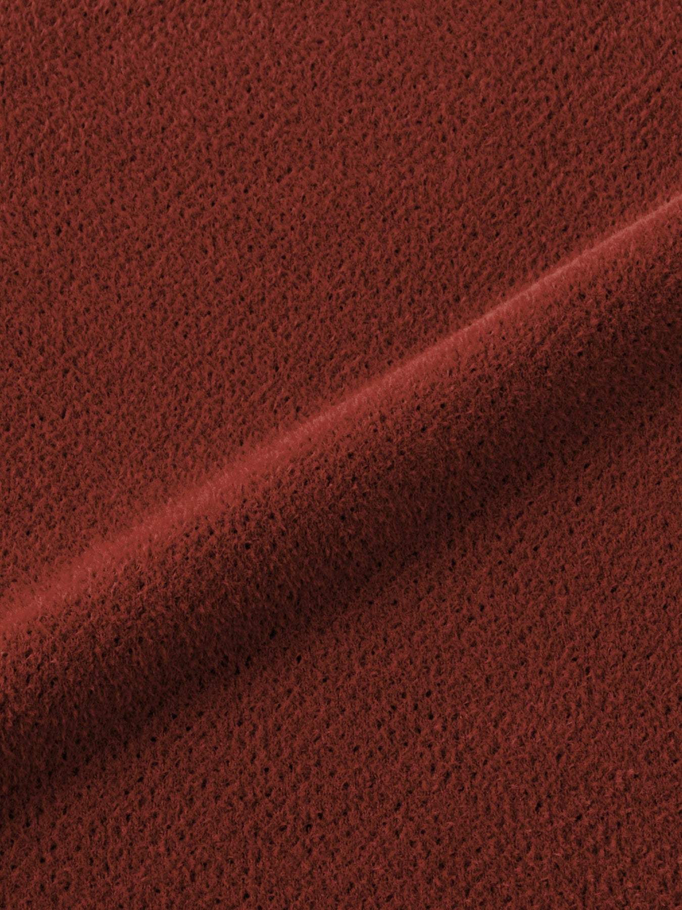 • Gefertigt aus einem speziellen Garn mit flachem Querschnitt und samtartiger Textur, in einer Mesh-Struktur gestrickt, um Wärme, Atmungsaktivität, schnelles Trocknen und ein weiches Gefühl zu bieten.