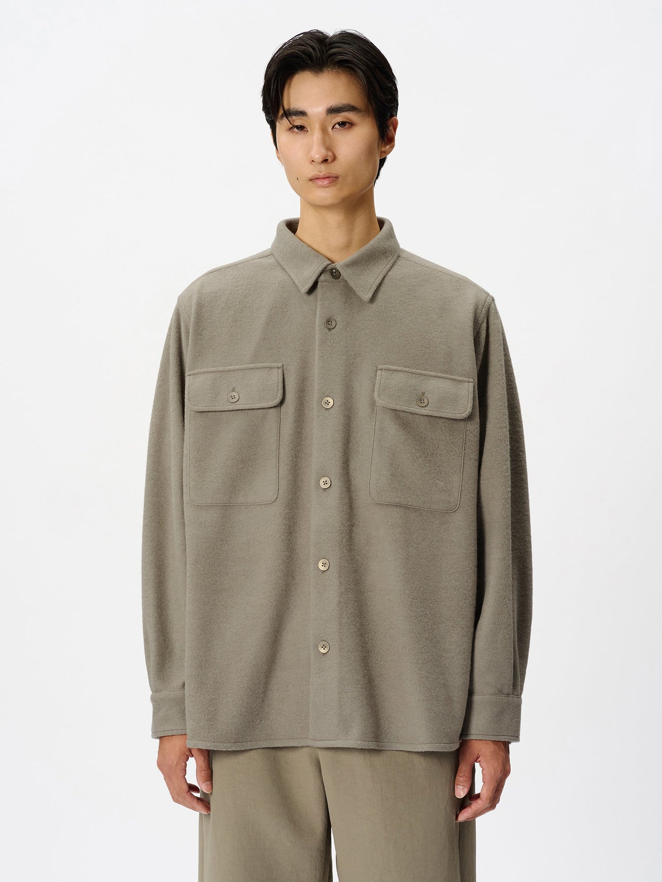 Ein vielseitiges Overshirt aus warmem, gebürstetem Wolljersey, gleichermaßen geeignet als Oberbekleidung oder Zwischenschicht.