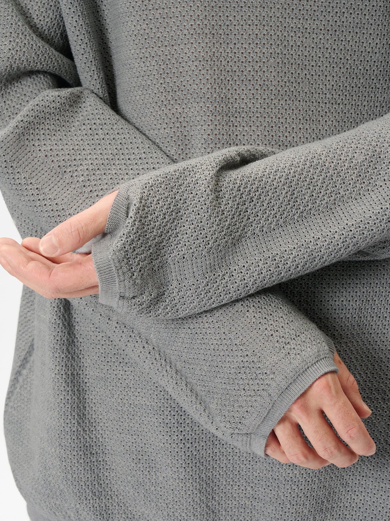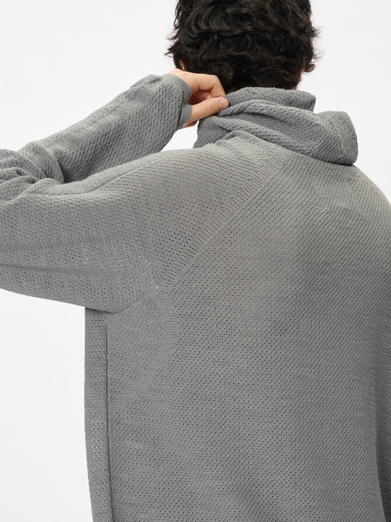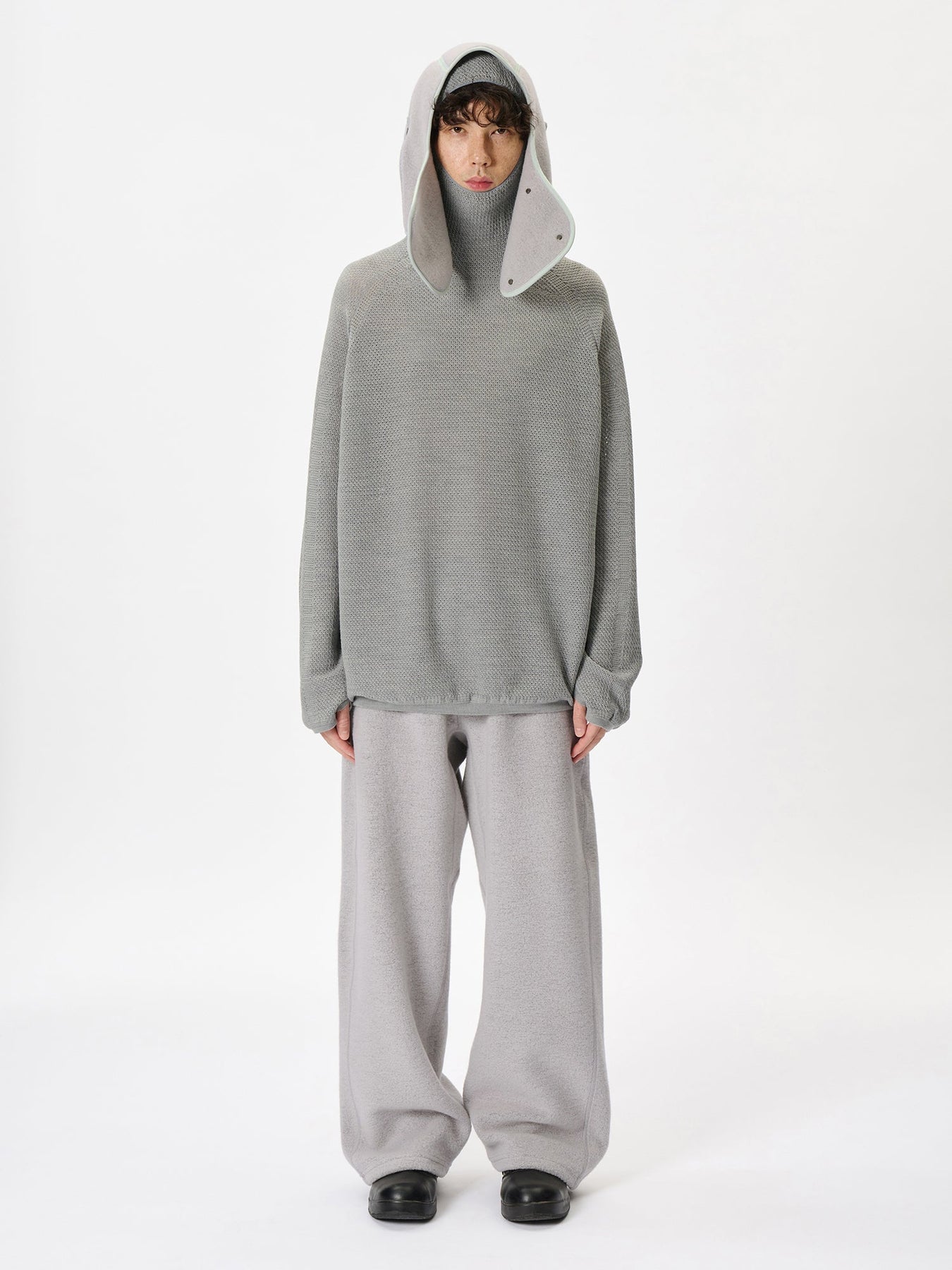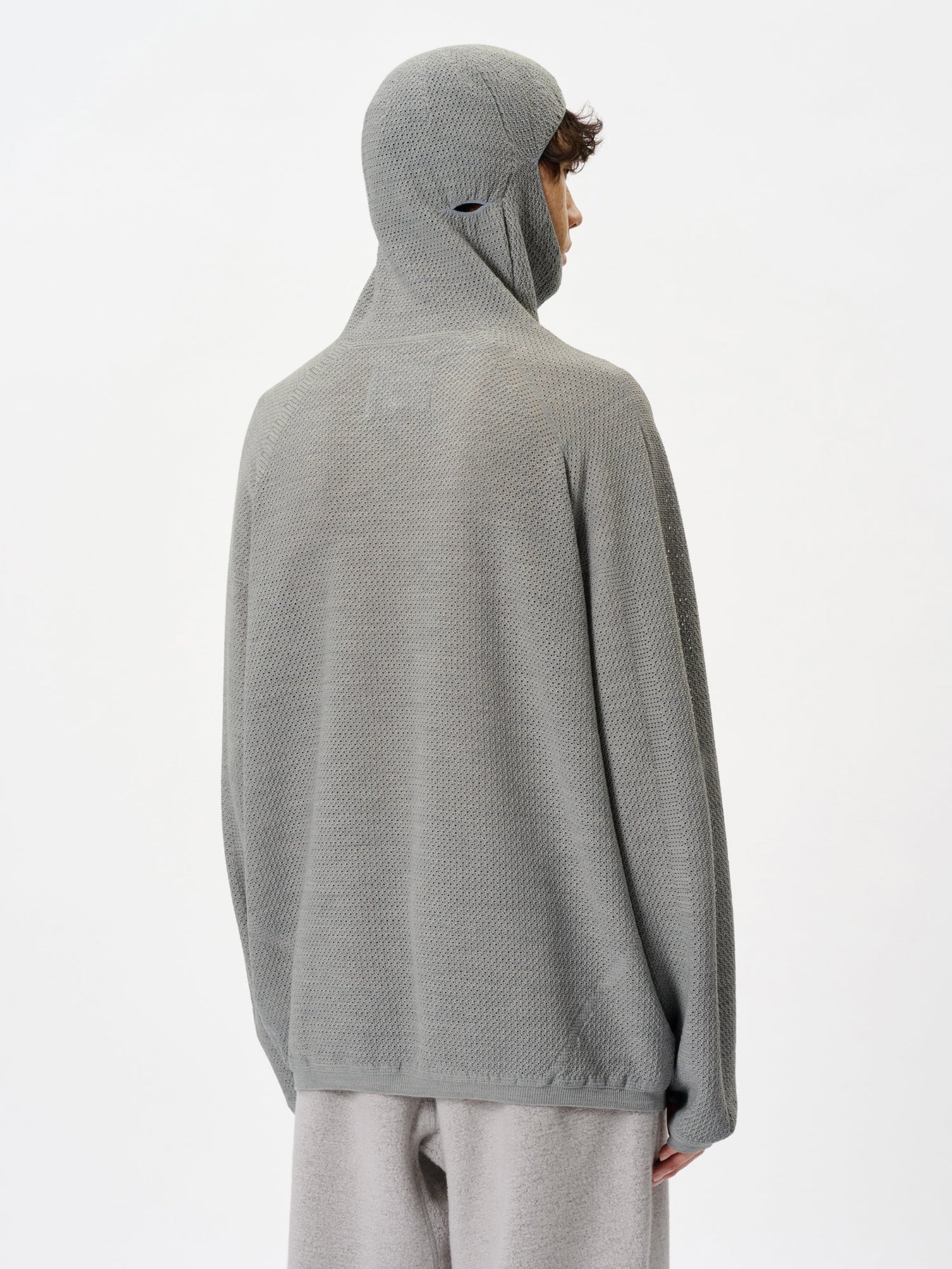 Die FW25-Kollektion von Goldwin 0 erforscht neue Formen funktionaler Strickwaren. Ein Strickoberteil mit Balaclava-Stil Kapuze, vollständig gefertigt mit einer feinen, perforierten Strickstruktur. Hergestellt mit Wholegarment nahtloser Technologie für überlegenen Komfort ohne Nähte auf der Haut. Ein Woll-Polyester-Garnmischung bietet Wärme, Haltbarkeit und Vielseitigkeit für das Stadtleben und Outdoor-Aktivitäten.
