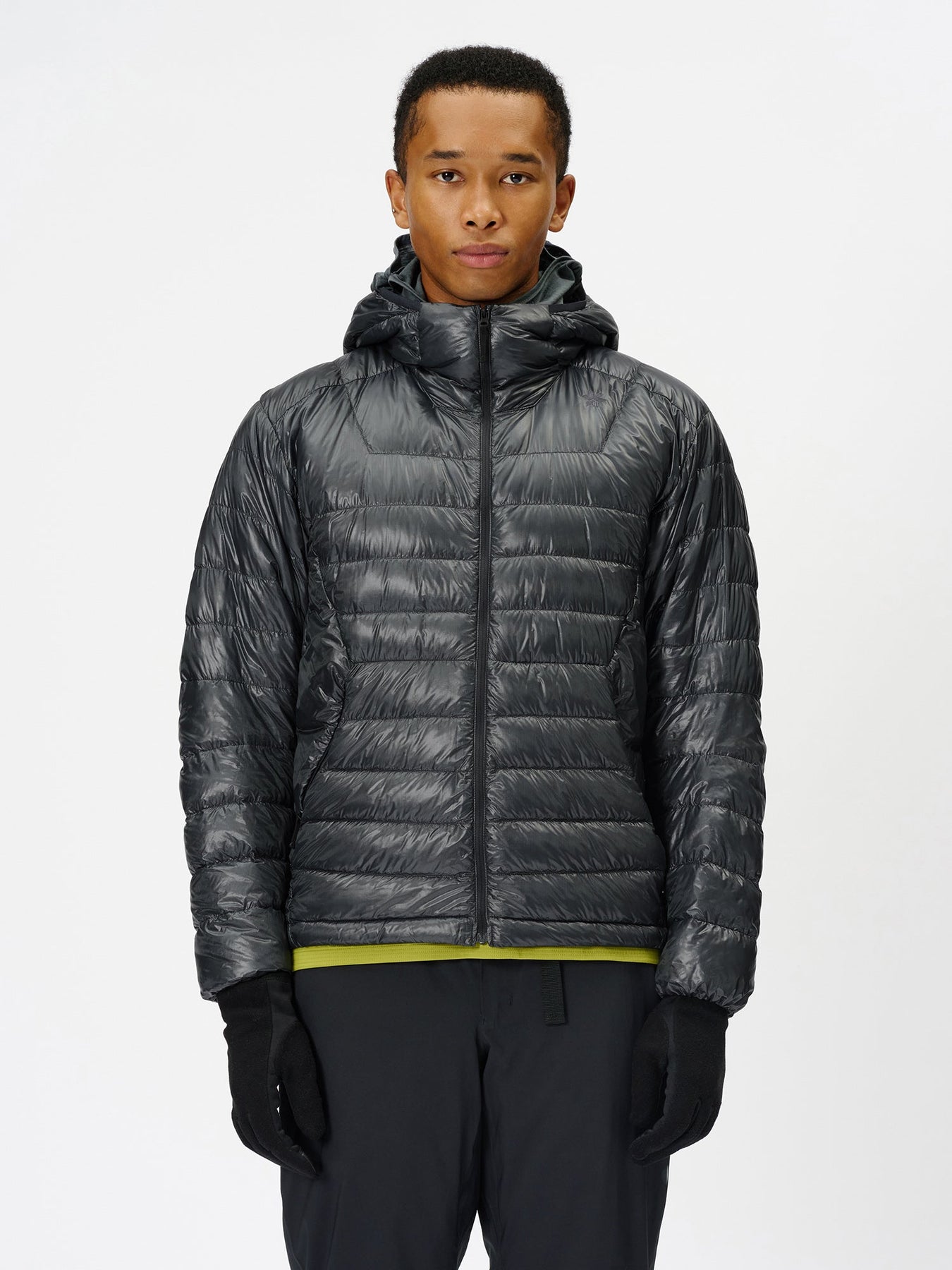 • La finition par pulvérisation de titane ajoute un éclat métallique à la doublure et à l’intérieur des poches mains, améliorant la rétention de la chaleur rayonnante.