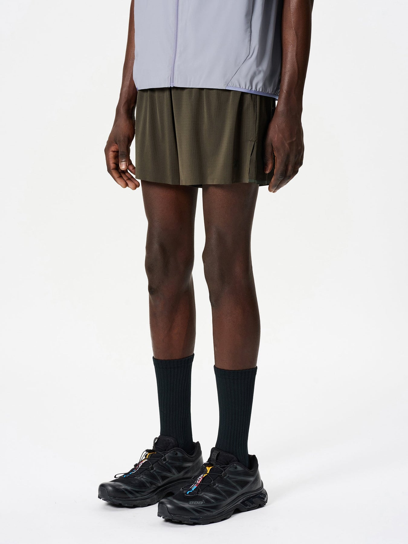 • Fentes latérales à l'ourlet favorisant un levé de jambe fluide et une foulée sans entrave.