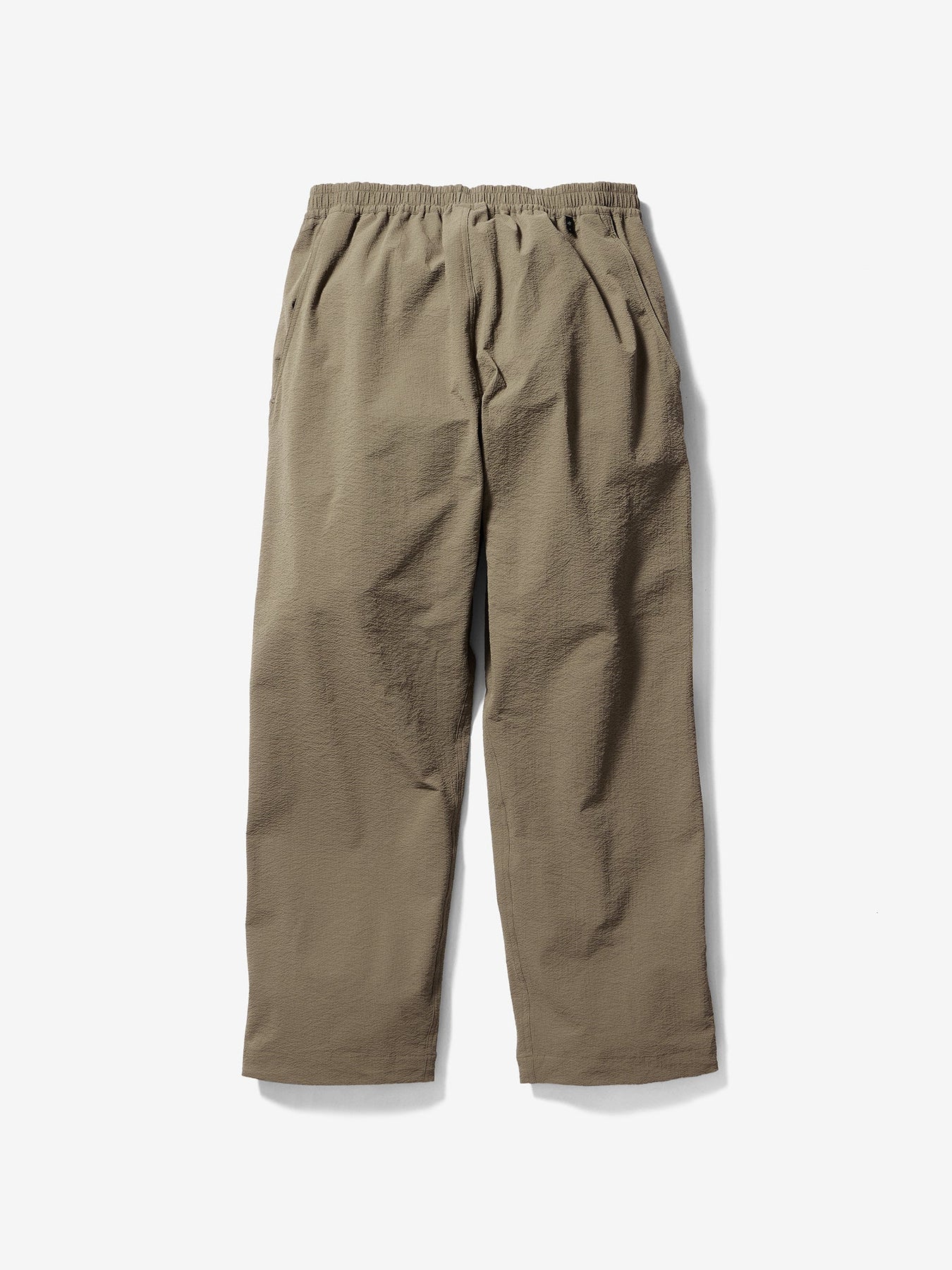 Ce pantalon est confectionné dans un tissu présentant une texture finement ondulée, semblable à des vagues. Il offre des propriétés d'évacuation de l'humidité et de séchage rapide, et est conçu avec une protection UV intégrée, testée selon la norme AS/NZS 4399, la norme australienne/néo-zélandaise pour les vêtements de protection solaire, adaptée aux longues heures passées en plein air. La silhouette ample permet à l'air de circuler, et le contact minimal avec la peau assure le confort même en plein soleil. Un sac de rangement assorti en tissu est inclus pour un rangement compact.