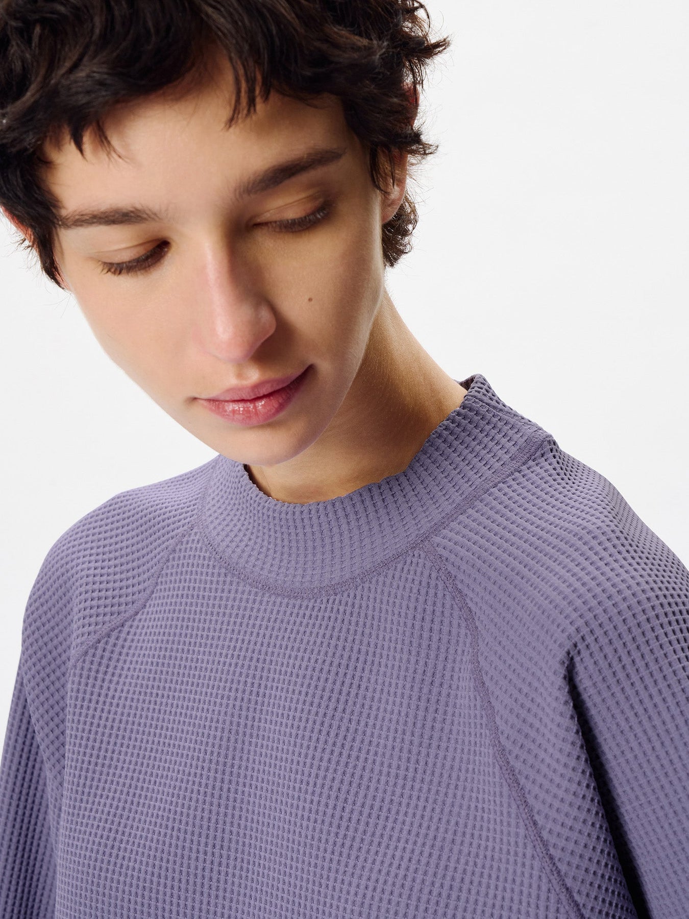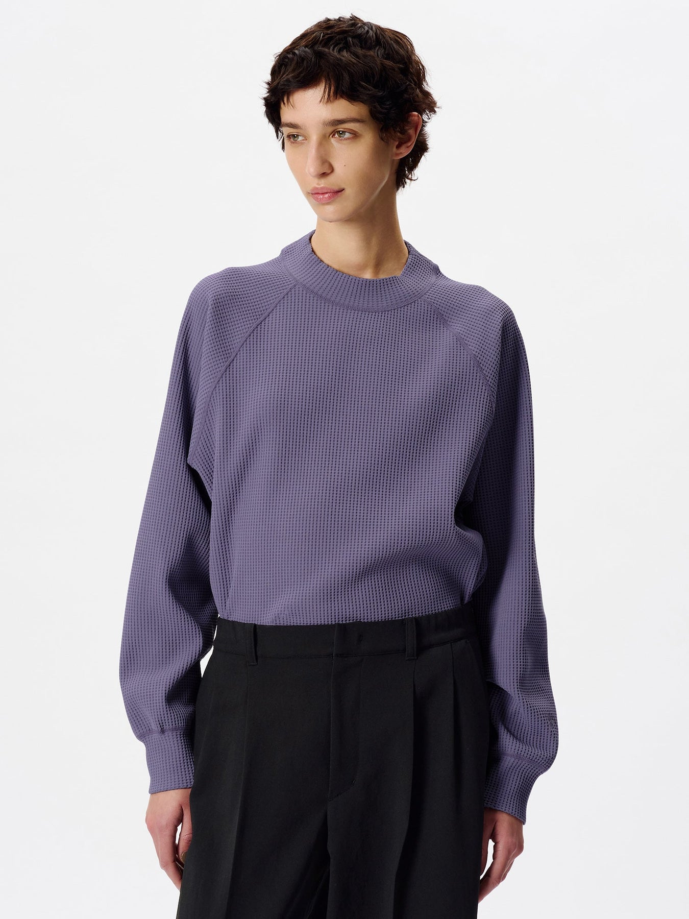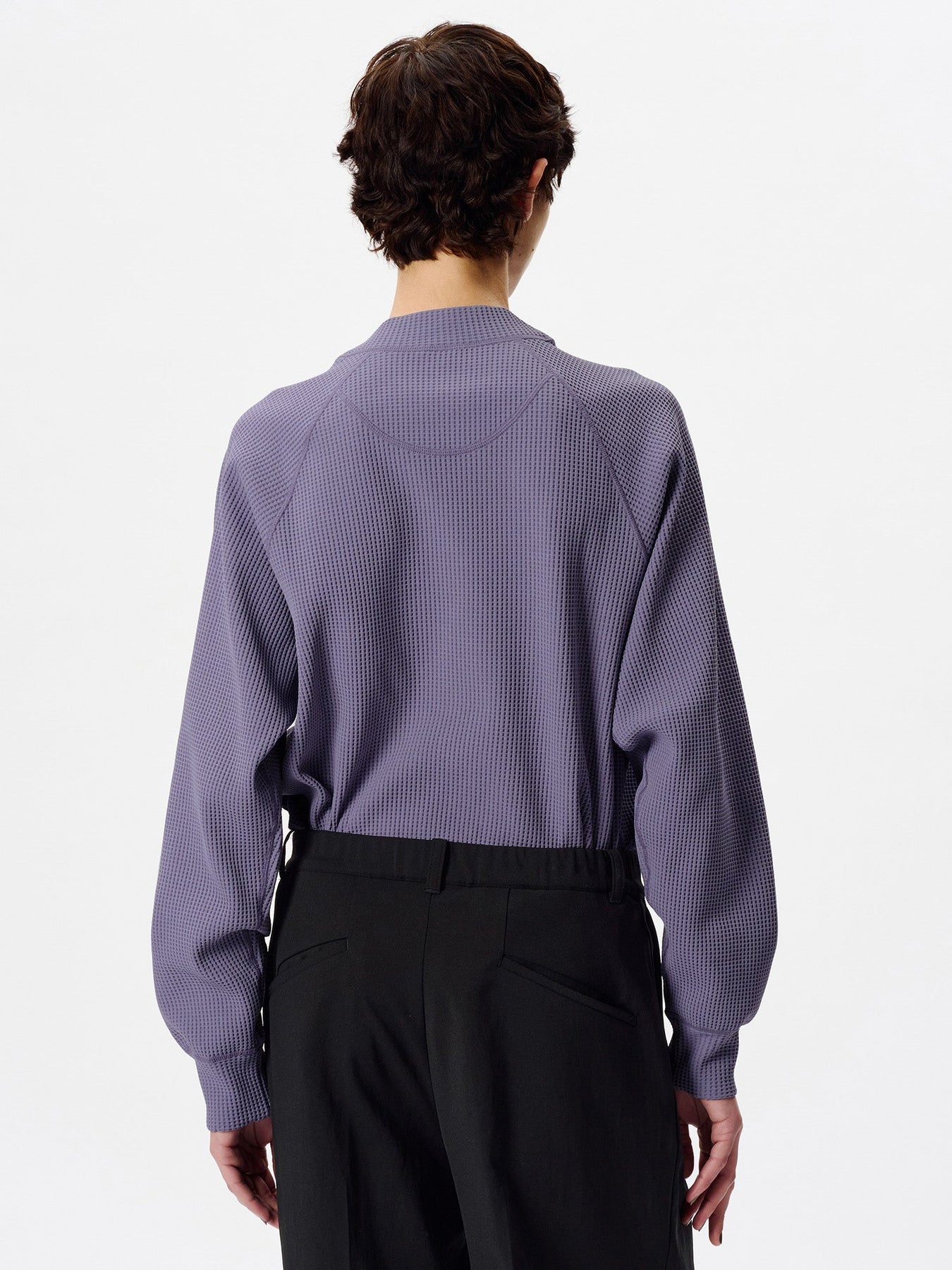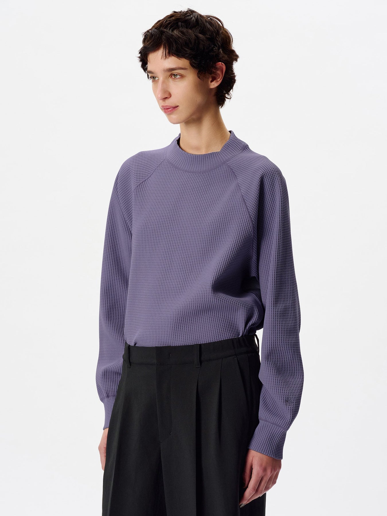 This mock-neck T-shirt is made from a thermal fabric that offers a soft, voluminous texture while remaining lightweight.
