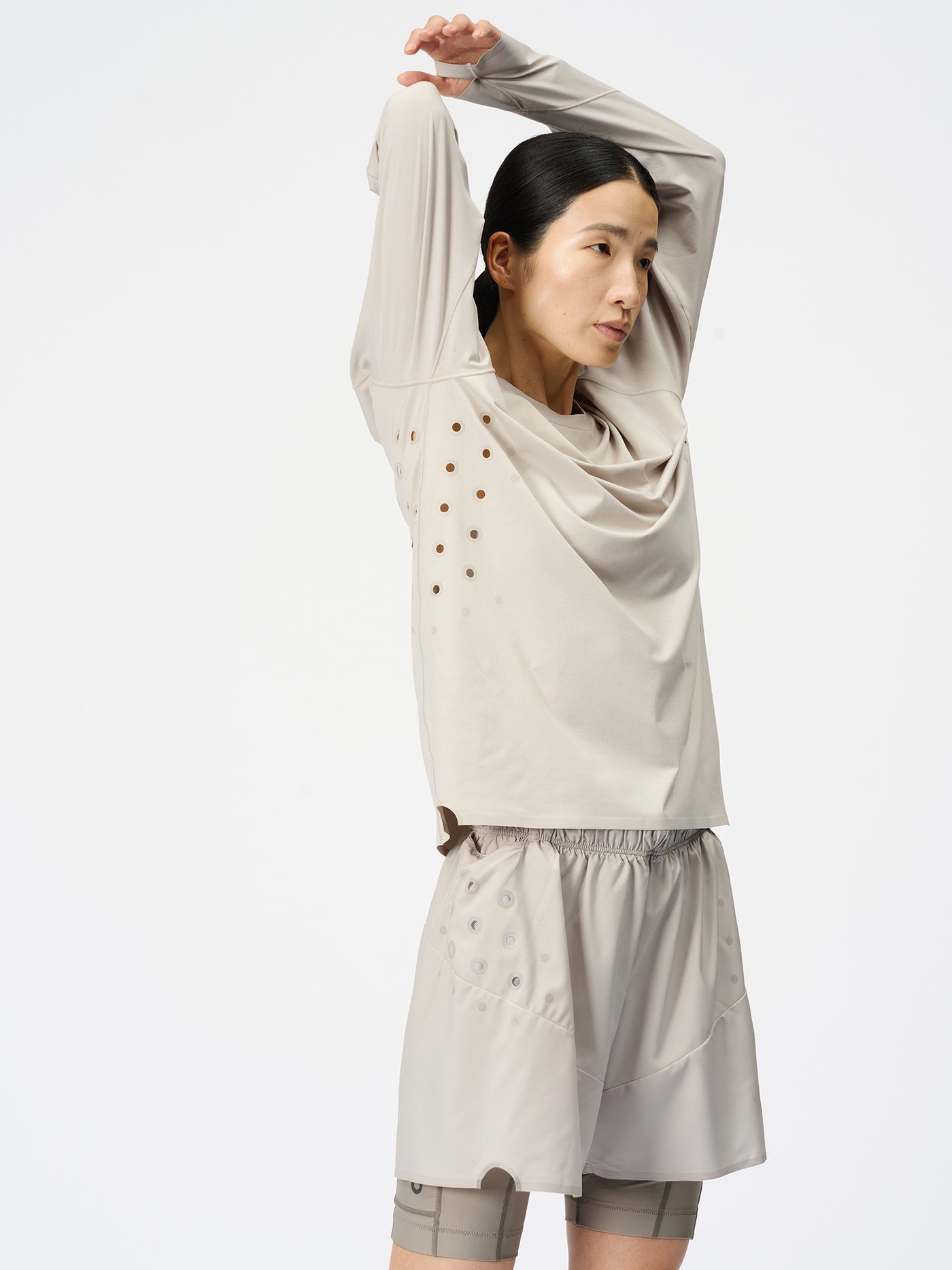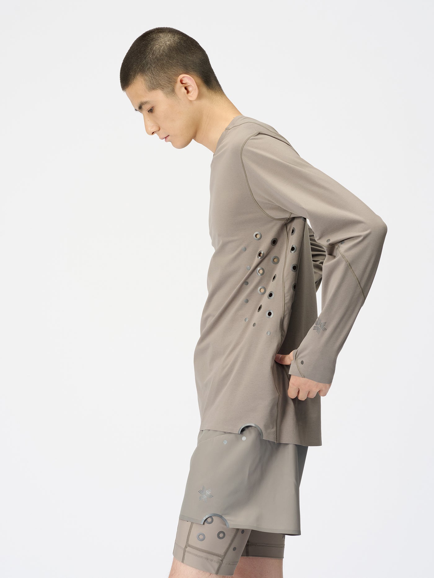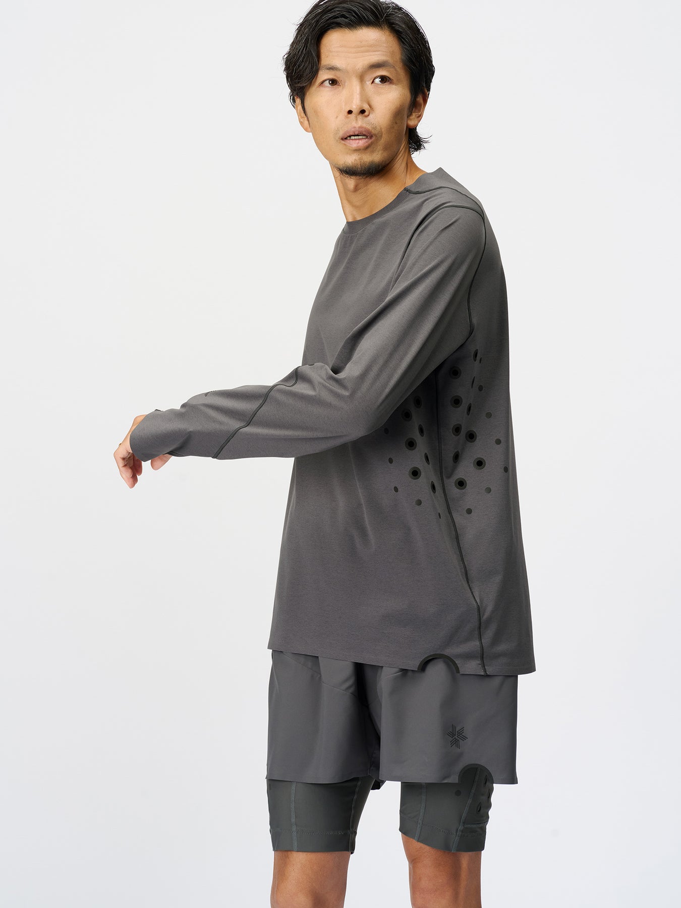 An original long-sleeve T-shirt developed for comfort and mobility, part of the Goldwin Performance concept with Nur Abbas.